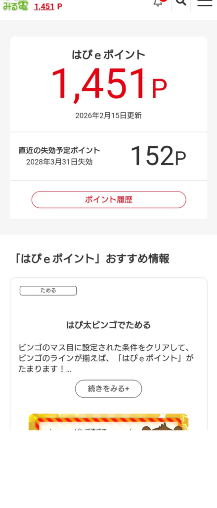 | はぴeポイント | 1,451p | 関西電力の生活インフラから。使い方がわからないポイントの一つです(笑) |